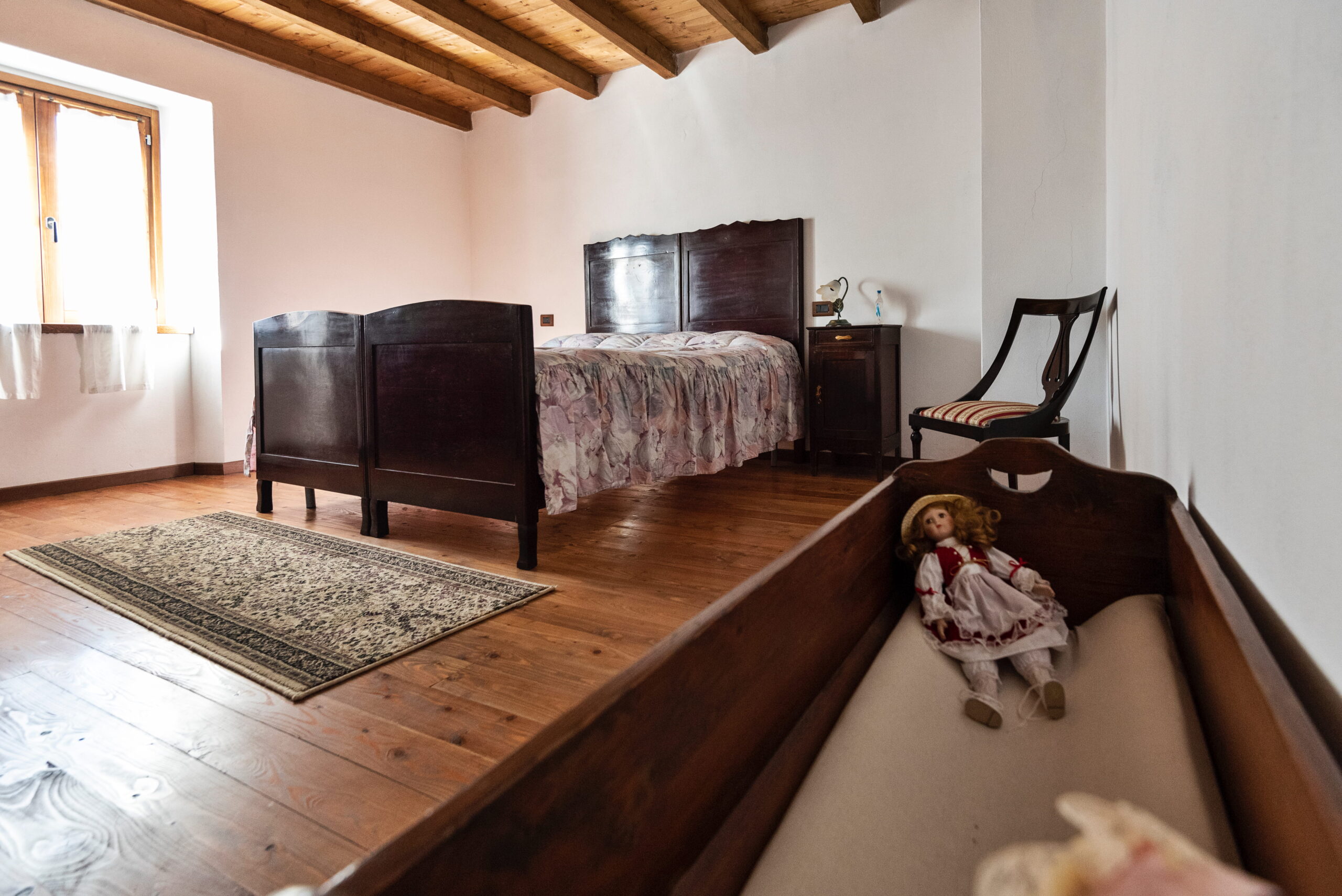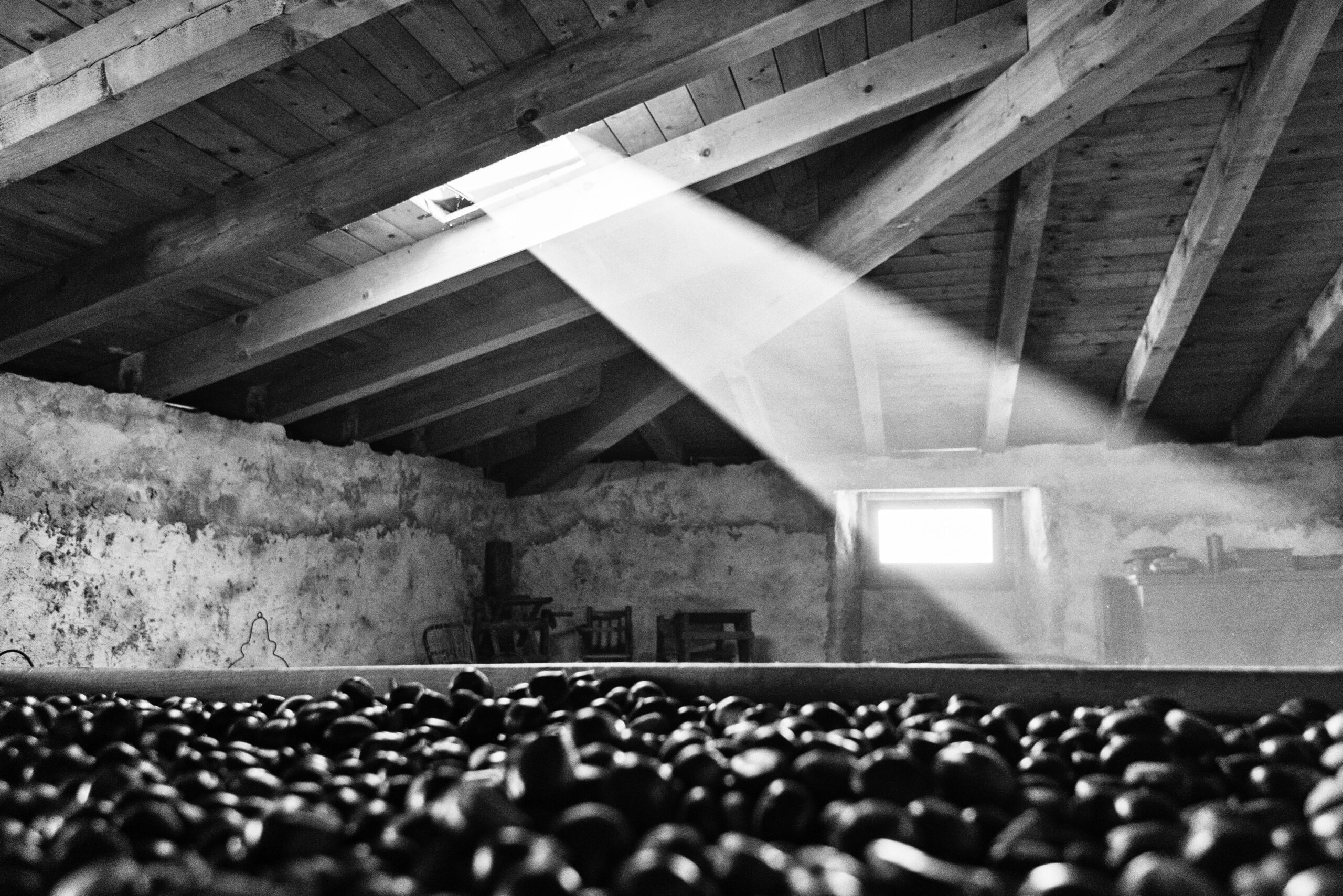Questa casa presenta ancora la tipica struttura di un tempo con l’affumicatoio, un ampio locale dove, all’altezza di 3 metri, è collocata una graticola (grat), costruita in legno di nes (ontano) o castagno, su cui vengono distese le castagne per l’affumicatura. Sotto il graticcio, si apre la stanza del fumo, un secondo locale dove si espande un fumo denso e profumato, proveniente da un fuoco che brucia nella sottostante stanza del camino.
