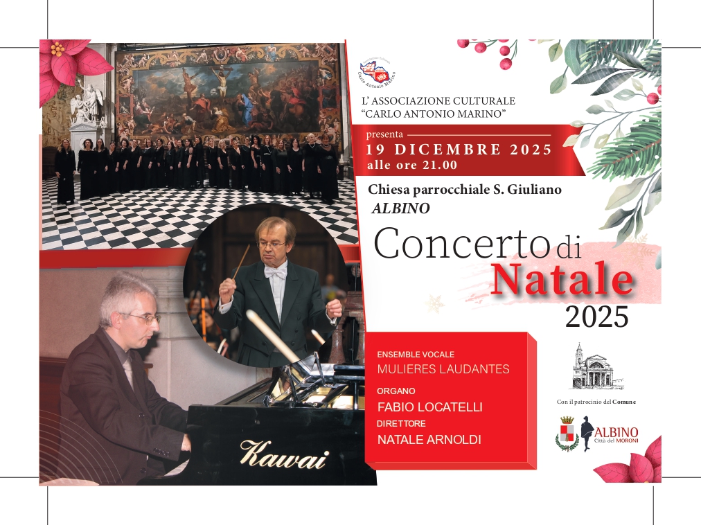Venerdì 19 dicembre alle ore 21.00 è in programma ad Albino, presso la chiesa parrocchiale di San Giuliano, il “Concerto di Natale 2025”, a cura dell’associazione culturale “Carlo Antonio Marino”.