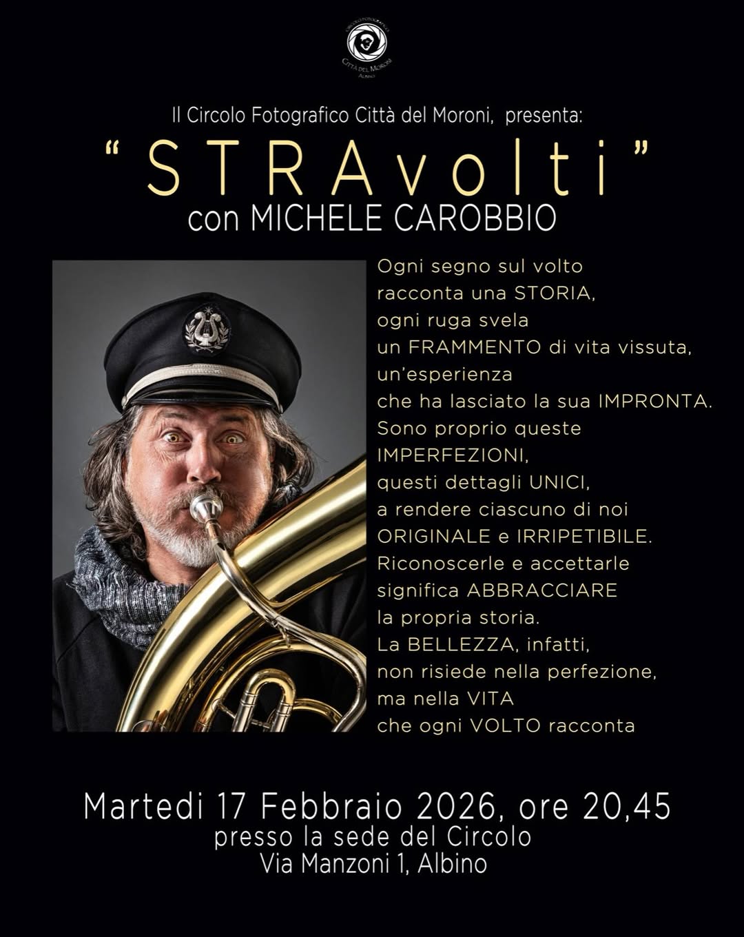 Martedì 17 febbraio alle ore 20.45, presso la sede del Circolo Fotografico Città del Moroni, a Desenzano al Serio, è in programma la serata-incontro “STRAvolti”, con il fotografo Michele Carobbio.