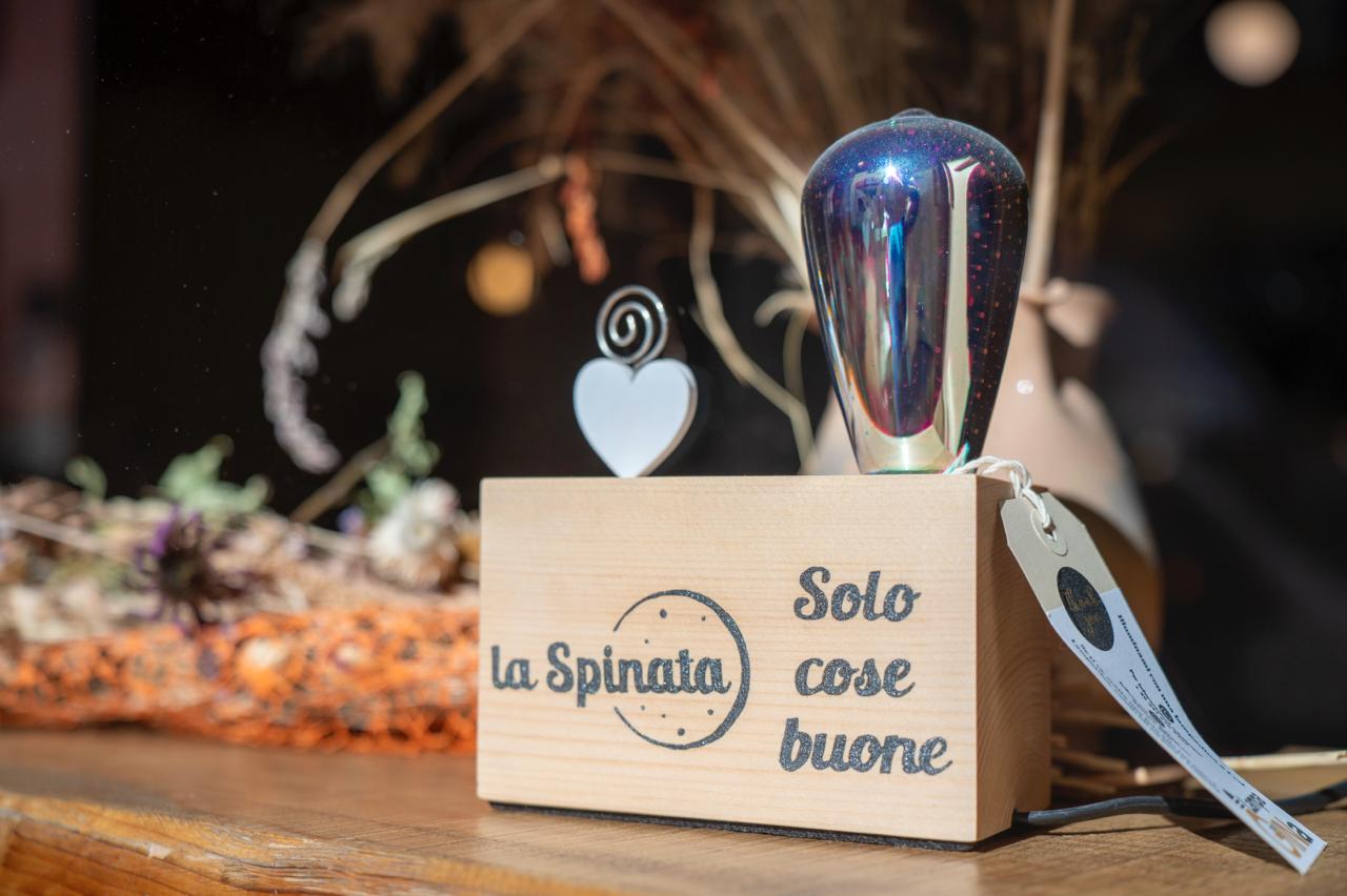 La Spinata è anche un punto di riferimento per chi desidera portare a casa i sapori del territorio. Qui si possono acquistare diversi prodotti della filiera del Mais Spinato, come frollini, chiacchiere salate, birre artigianali e torte. Non mancano poi delizie come il gelato al Frollino di Mais Spinato di Gandino (realizzato dal laboratorio Gelateria Franca), le pagnotte Spinate e le soffici focacce, disponibili freschissime ogni venerdì.